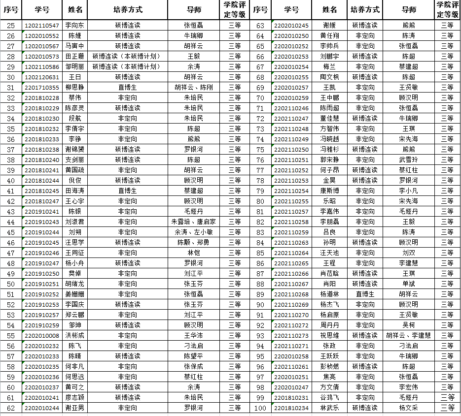 2021-2022年度博士研究生奖助学金推荐名单于10月11日进行了公示,公示期间收到相关意见反馈,经报评审小组同意,对推荐名单予以更新(红色标注部分)如下: