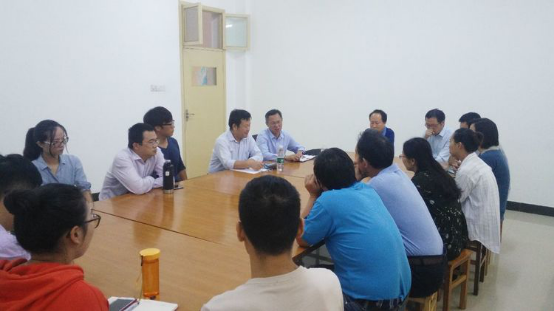 学院领导一行在基地教室倾听教员们的工作汇报和实习建议