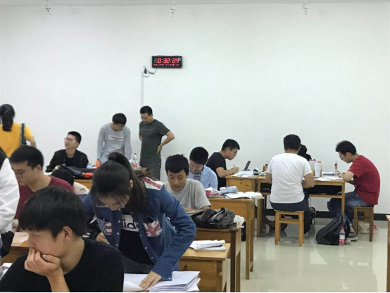 学生们挑灯夜战,汪利民老师和徐慧茹老师到教室指导学生图纸和报告